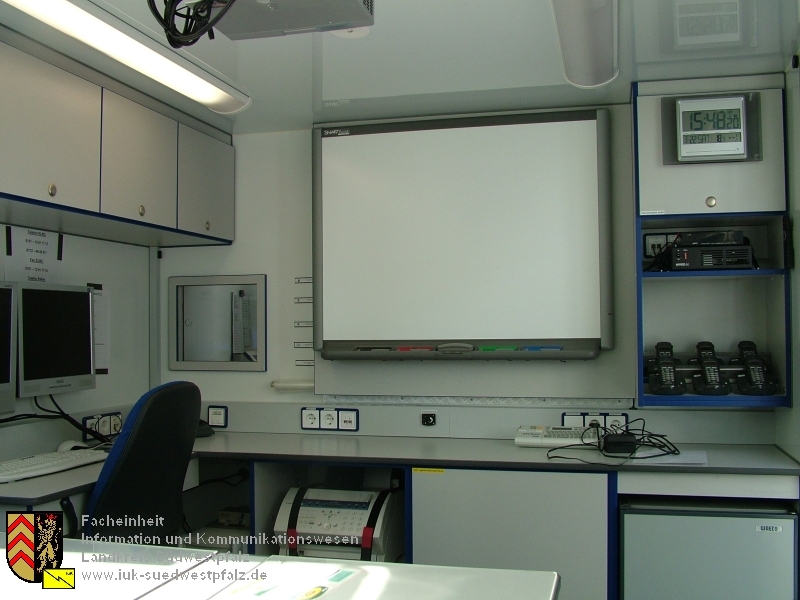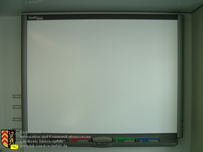 Das SmartBoard ist fest eingebaut im ELW2 (Raum C) zu finden. Dieses Gerät ist quasi eine digitale Tafel, durch elektronische Abtastung der Oberfläche wird die Schrift des Benutzers auf einem PC sichtbar. Der Beamer dient lediglich zur Projektion eines Bildes auf die Tafel um so eine sichtbare Oberfläche zu erhalten. Durch das digitale Medium ist es enorm einfach soeben gezeichnete Bilder oder geschriebene Texte zeitnah abzuspeichern und per E-Mail weiterzuleiten. Dieser Zeitvorteil gegenüber einem Whiteboards z.B. wird häufig bei Lagebesprechungen oder Eintragungen in Karten verwendet.