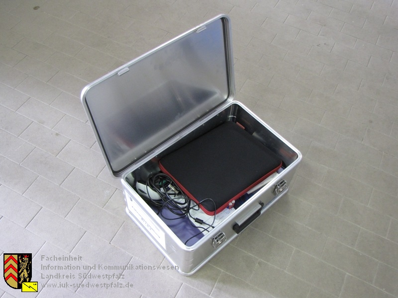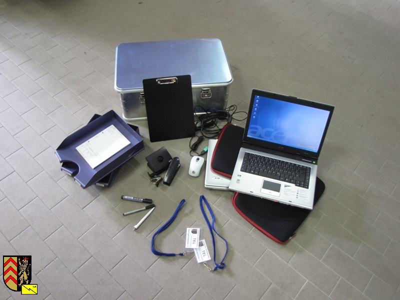 In der Zarges Box befinden sich entsprechen der Staabsfunktion zugeordnet verschiedenste Materialien zum Einrichten eines Arbeitsplatzes der Technischen Einsatzleitung. Jedes Sachgebiet im Stab hat somit seine individuelle Ausstattung in einer Box sofort zur Verfügung. Die restlichen Zarges Boxen werden zum Transport für Netzwerktechnik und sonstigen Materialien eingesetzt. Inhalte dieser Box sind z.B: - 1x Laptop - 1x Laptop Zubehör (Maus, Netzgerät, Akku) - 1x Ausweis Sachgebiet - 1x Ausweis Sachgebietsgehilfe - 1x 3m Netzwerkkabel - 1x Satz Schreibmaterialien - 1x Locker - 1x Heftgerät - 2x Brieffächer (Eingang / Ausgang) - 1x Klemmbrett - 3x Vierfach-Farbvordrucke